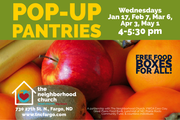Come and visit, grab a box of food and help share food with others. This is neighboring. This is what we do. We will continue to have Pop-up Pantries once/month through the winter.